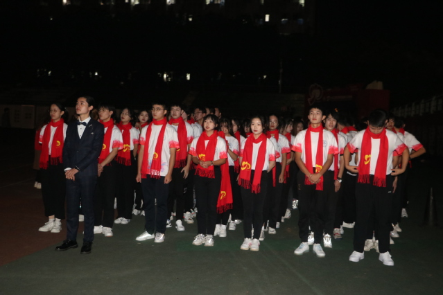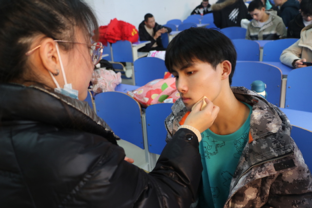当日下午,同学们都认真的画着妆,他们期待着能在晚上拿出自己最好的姿态。晚上,同学们神情肃穆,迎着舞台的光,踏着稳健的步伐走上舞台,他们怀揣着对我校诚挚的敬意开始演唱。
