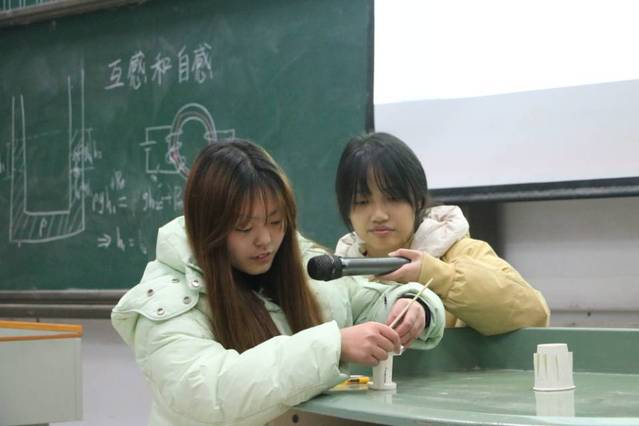 决赛现场各位参赛选手创意新颖,在比赛中他们一边陈述自己的创新理念,一边演示自己的创新实验。新颖的实验仪器,有趣的实验现象令在场的评委老师也是耳目一新,一些作品更是得到老师的高度评价。决赛最后,葛泽玲老师总结道:此次比赛让她感到惊喜,同学们在比较短的时间内有这样的作品是值得表扬的;但同时也希望各位同学能更注重团队意识,组建一个好的团队,分工合作,设计一个更加准确,能定量测量的仪器。