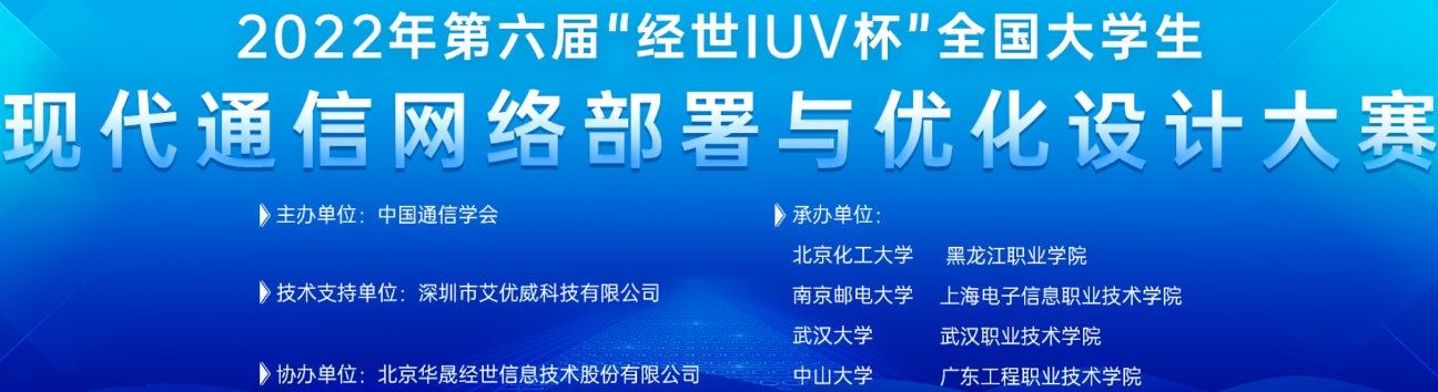 “经世 IUV 杯”全国大学生现代通信网络部署与优化设计大赛规模大、水平高、参赛人数多,是行业内具有较强影响力的全国性大学生赛事之一。本届比赛由中国通信学会主办,旨在为加强学生实际操作能力和工程实践训练,提高学生对信息通信网络设计、部署及优化方面的综合能力,为优秀人才脱颖而出服务社会发展创造条件。 |