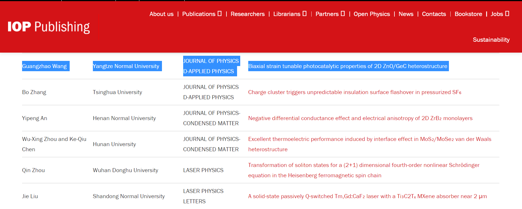 我校荣获IOP出版社2022年“中国高被引文章奖”的相关论文