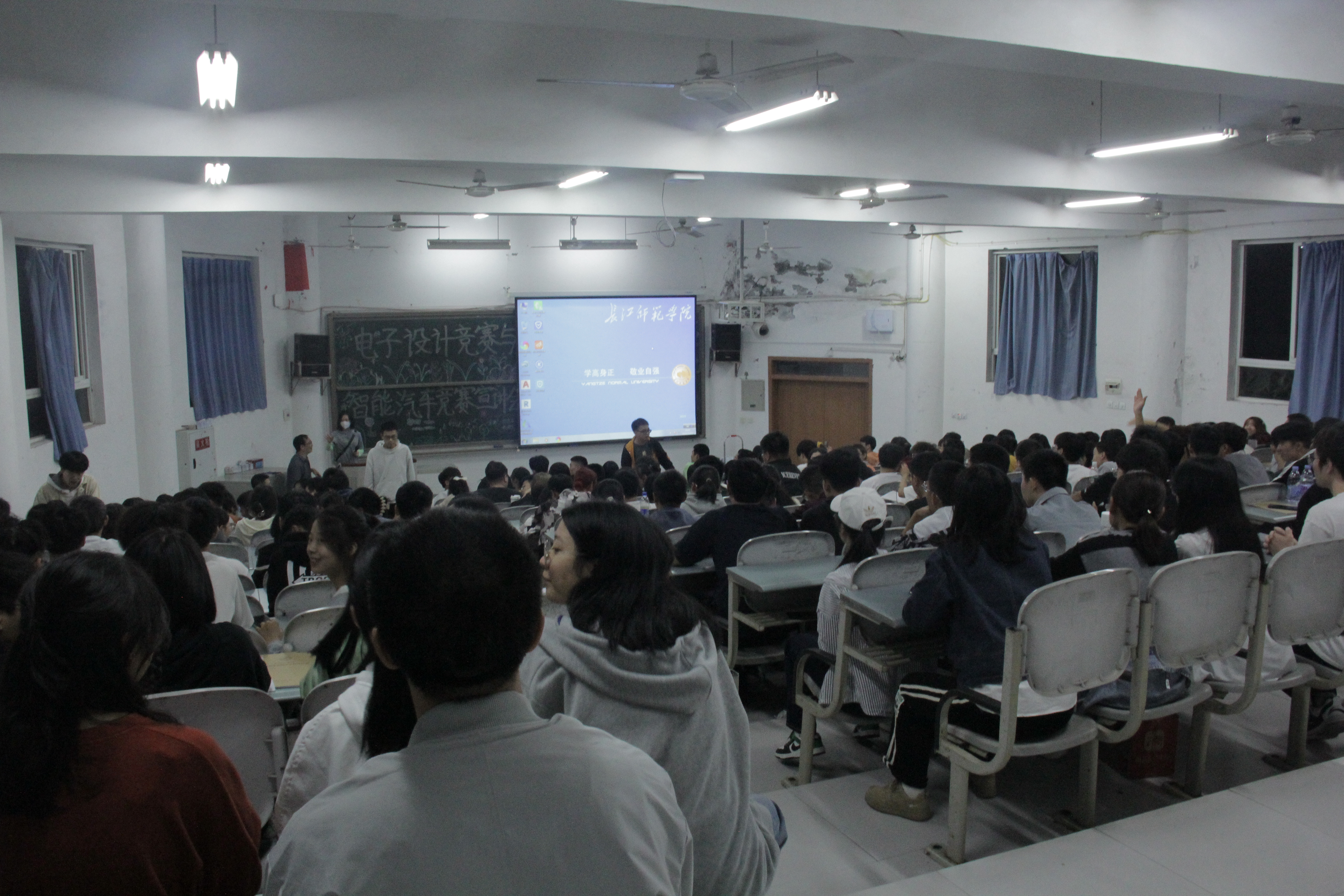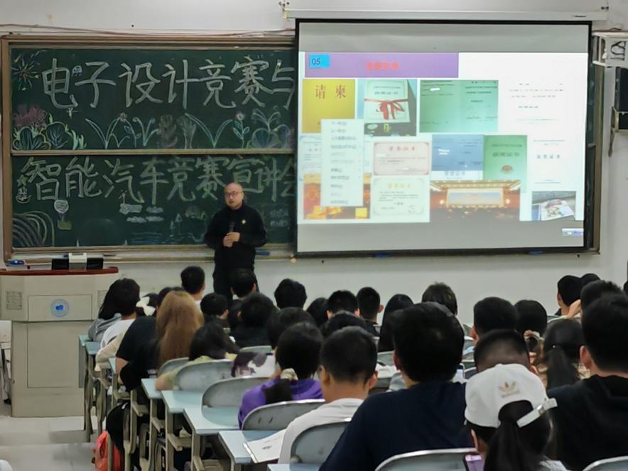 人工智能团队杨增宝老师向大家详细讲解了智能车大赛的规模和影响力,播放了比赛视频,介绍了学院备赛实验室,希望更多的学生加入到人工智能团队,鼓励大家积极参加学科竞赛,提高自身专业水平与素质。