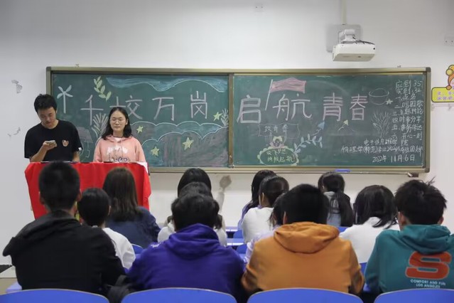 会议开始,各班进行点名,紧接着各班同学起立齐唱团歌。而后,22级辅导员邓志平为22级同学介绍党委书记张敏以及22级新任辅导员罗月。