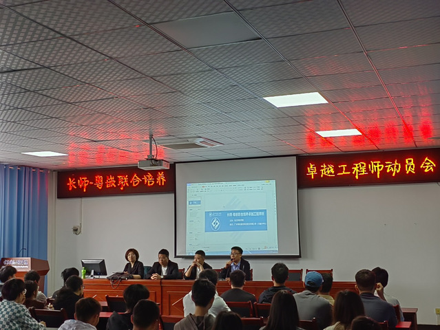 会上,黄老师分析了当前的就业形式,并指出“卓越工程师班”对锻炼同学们的工程实践能力有着十分重要的意义,希望同学们积极参与,不断提升就业竞争力,为高质量就业做好充分准备。接着,粤嵌李总经理说到:“同学们应制定好自己的职业规划,并落实在行动上”。而后,她介绍了粤嵌公司的分布以及与各高校的合作情况,并说道:“卓越工程师班将进行为期4至5周的实战化项目训练,培训期间十分考验同学们的意志力,希望同学们要持之以恒,长期坚持才会收获成果。”