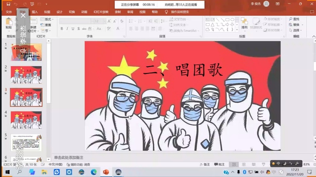 团会伊始,各班进行点名,并齐唱团歌。紧接着,各班开始主题讨论。同学们在主题讨论中了解当前疫情防控形势,明确作为新时代的青年面临着“天将降大任于斯人”的时代使命。在疫情面前,青年当勇挑重担,坚定理想信念,勇于担当作为,积极推动疫情防控工作的开展。而后,时事分享。最后,班委进行事务传达,提醒同学们做好疫情防控的同时也要注意加强寝室安全管理,预防电信诈骗,关注助学贷款通知以及22级物理专业的同学们静待师范认证讲座的通知。