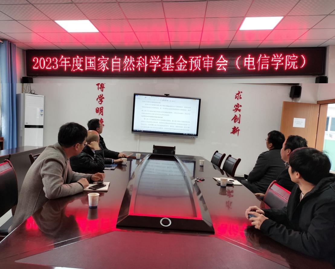 在格物楼1417会议室组织召开2023年度国家自然科学基金预审会,科研处李言栋副处长和李亚东科长莅临指导。会议由副院长谭勇主持,副院长郭红力、科研秘书李兰和部分教师参会。