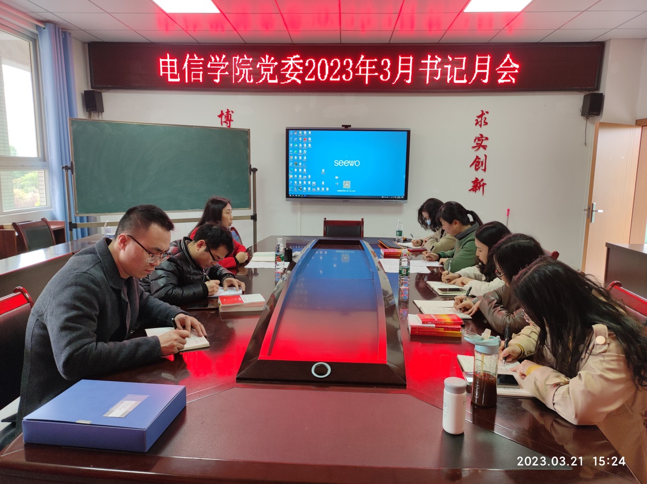 电信学院党委召开3月书记月会a片无码 2023年3月书记月会 3月21日下午15:00,电信学院党委在格物楼1417召开书记月会,会议主题是组织发展工作和二十大精神宣讲。会议由党委书记张敏主持,党委委员、各支部书记参加会议。 会上,张敏书记对2023年3月党建工作进行了部署:一是根据组织部的安排,有计划开展2023年上半年党员发展工作。要求各学生支部建立符合基本条件的入党积极分子台账,做好2023年春期党员发展的前期工作;二是安排部署了党的二十大精神宣讲工作,各支部书记带头宣讲二十大专题党课至少一场。三是要求各支部开展特色研学活动,如实地考察、专题调研、知识竞赛、主题创作等,把学习成果报学院,学院集中上报党委宣传部。 最后,张书记通报了学院对各支部1、2月党建材料的督查情况,并部署了3月主题党日活动。 最后,要求各支部书记恪尽职守,担当作为,全力以赴,群策群力,充分发挥党员在各项工作中的示范引领作用,为全力打好申硕攻坚战提供坚强的政治保障!