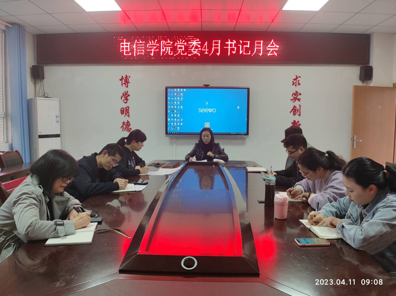 4月11日上午9点,电信学院党委在格物楼1417召开书记月会。会议由党委书记张敏主持,各支部书记、组织员参加会议了。