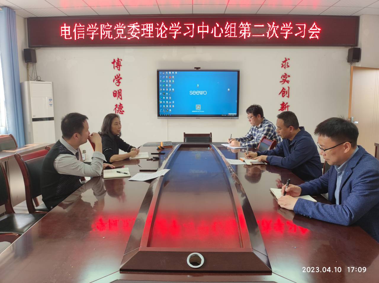2023年4月10日上午9点,电信学院党委在格物楼1417开展了理论学习中心组第二次学习会。会议由学院党委书记张敏主持,全体党委委员参加了本次会议,非处级干部列席。会上张敏书记组织学习了习主席在十四届全国人大一次会议上的重要讲话精神,重点领学了李克强总理在第十四届全国人民代表大会第一次会议上所作的《政府工作报告》。