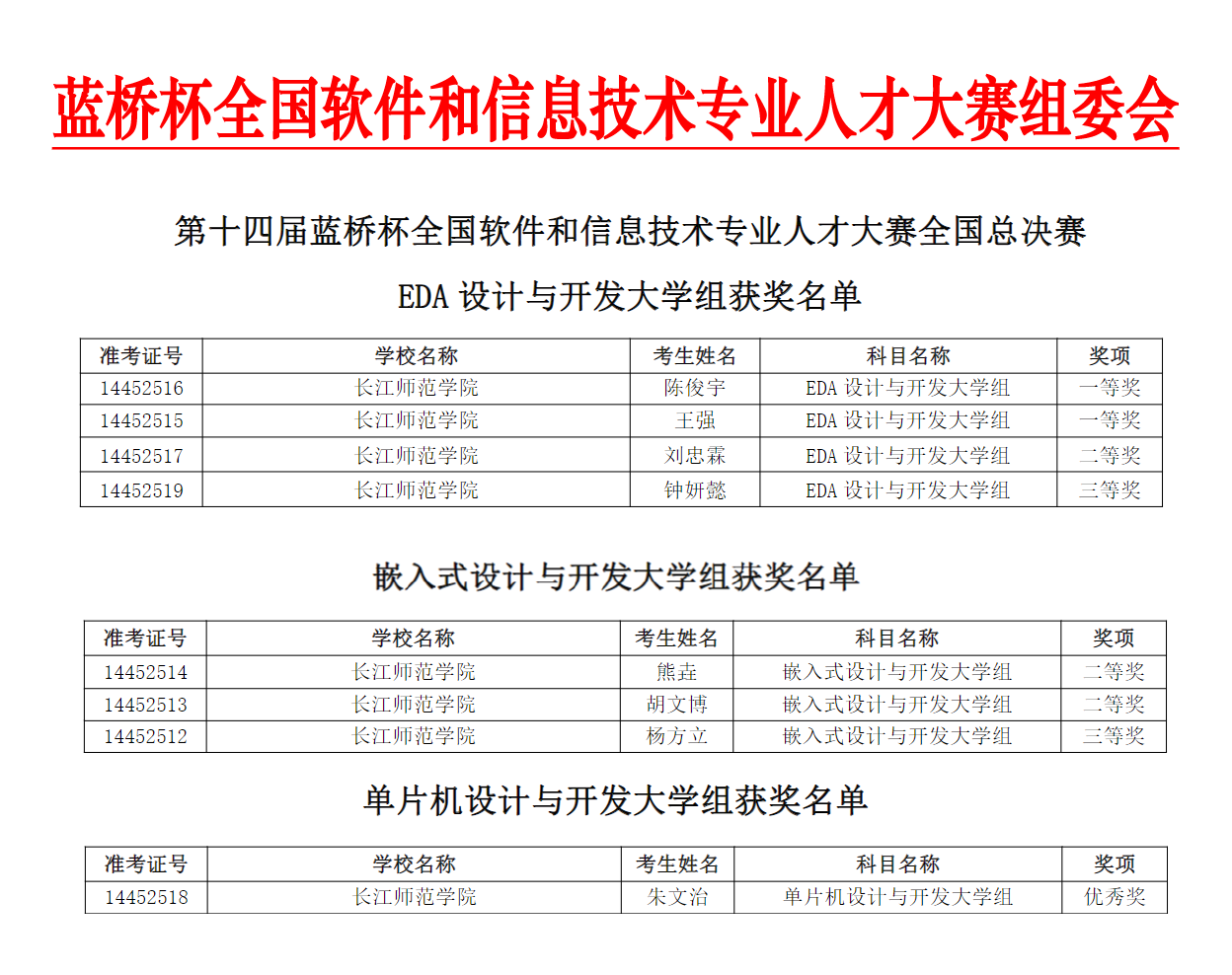 a片无码 学子在第十四届蓝桥杯全国软件和信息技术专业人才大赛全国总决赛取得优异成绩,其中EDA设计与开发:国赛一等奖2名,国赛二等奖1名,三等奖1名,两名获一等奖的同学总成绩排名都在前十名,其中陈俊宇同学在EDA项目中总决赛成绩排名第二名,离捧得蓝桥杯仅有一步之遥。嵌入式设计与开发:国赛二等奖2名,三等奖1名。单片机设计与开发:国赛优秀奖1名。