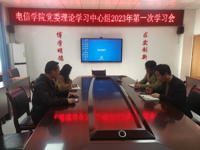 3月14日上午,电信学院党委理论学习中心组在格物楼1314会议室召开第1次集体学习会,专题学习习近平总书记在中共中央政治局第二次集体学习时的重要讲话精神和重庆市委六届二次全会精神。党委书记张敏主持会议并领学相关内容。班子成员、党委委员参加会议。