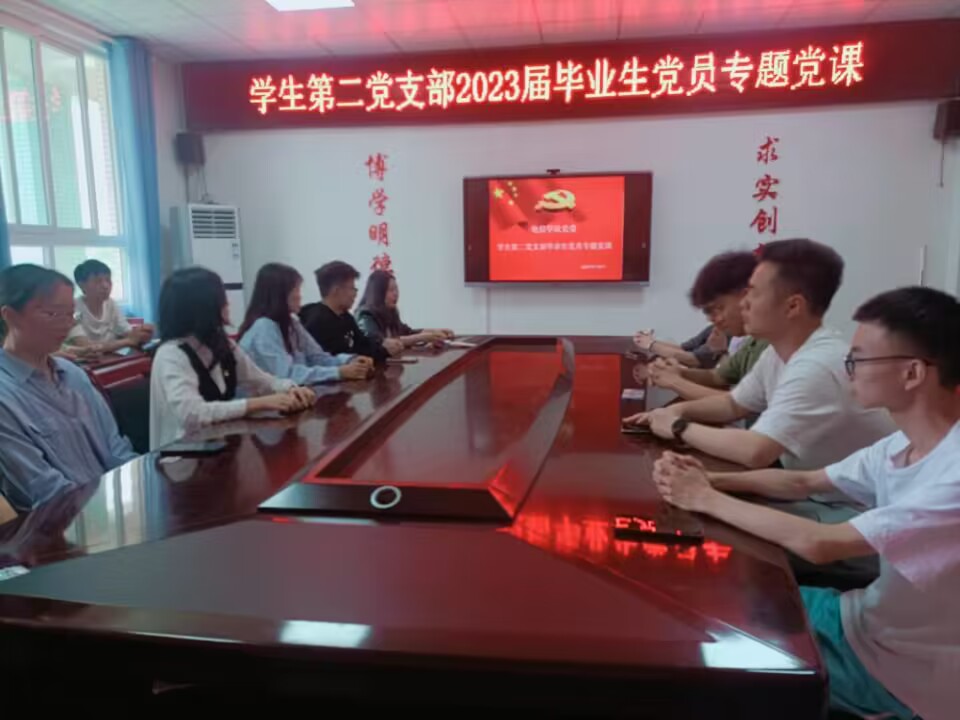 党委学生第二党支部在格物楼1417召开以“2023届毕业生党员专题党课”为主题的党员活动。本次活动由支部书记杨倩主持,学生第二党支部全体党员参与。