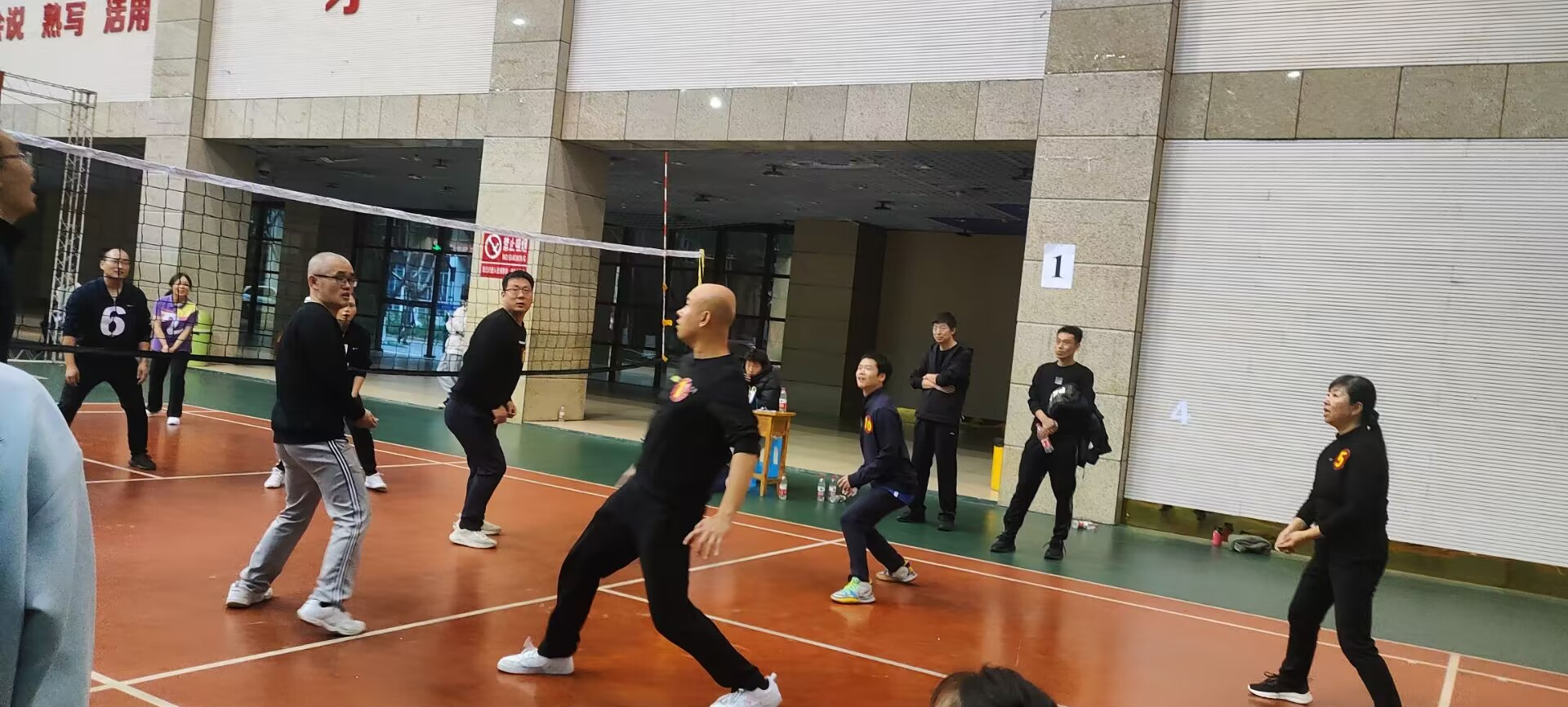 气排球对每位老师来说都是陌生的,都是第一次接触。比赛前老师们牺牲自己的休息时间,利用中午或晚上到体育馆训练,弘毅体育馆见证了老师们的热情、配合和汗水。