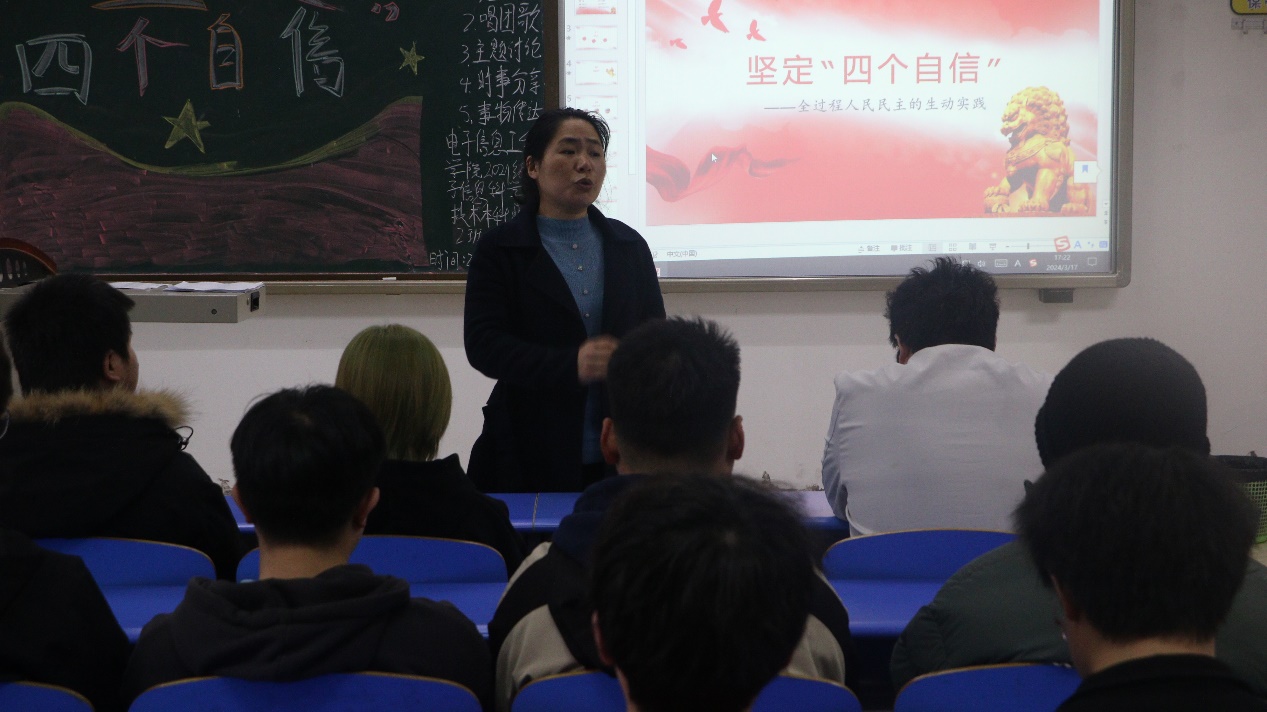 电信学院第四周团会电信学院第四周团会 通讯员:闫伦川 为学习贯彻习近平总书记在全国“两会”期间的重要讲话精神,强化思想政治引领,引导团员和青年更加坚定制度自信。a片无码 于3月17日16:30-18:50在崇礼楼四楼开展以“坚定‘四个自信’——全过程人民民主的生动实践”为主题的团会。21级辅导员谭洲敏,23级辅导员李阳莉、黄裕洪出席本次活动,21级、22级、23级全体同学参加。