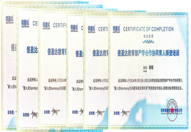校企共建技术研发中心 三是推进应用型科研。校企共研成果荣获重庆市科技进步三等奖、中国产学研合作促进会产学研合作创新成果优秀奖;与中科院所属院所合作项目通过中期验收;获批国家自然科学青年基金1项、省部级项目6项;承接横向课题7项,到账经费91万元;授权发明专利2项。四是提升工程化教学。结合共建企业优势资源,强化师资、平台、课程、教材等资源支撑。建成华为5G STAR虚拟仿真系统、粤嵌电子设计众创空间;共建《现代通信交换技术》《智能系统设计》等课程5门;出版《4G/5G通信项目式实验教程》《数字电子技术实验实训与仿真教程》教材2部;教师6人赴企业参加鸿蒙操作系统技术培训,获得华为认证证书1人、鸿蒙培训证书5人。积极推进“企业入教”。聘请企业教师17人参与指导实训、实习、毕业设计(论文);举办第三届粤嵌卓越工程师实验班,联合培养嵌入式技术卓越工程师;对接产业需求申报“鸿蒙智能传感系统”微专业。