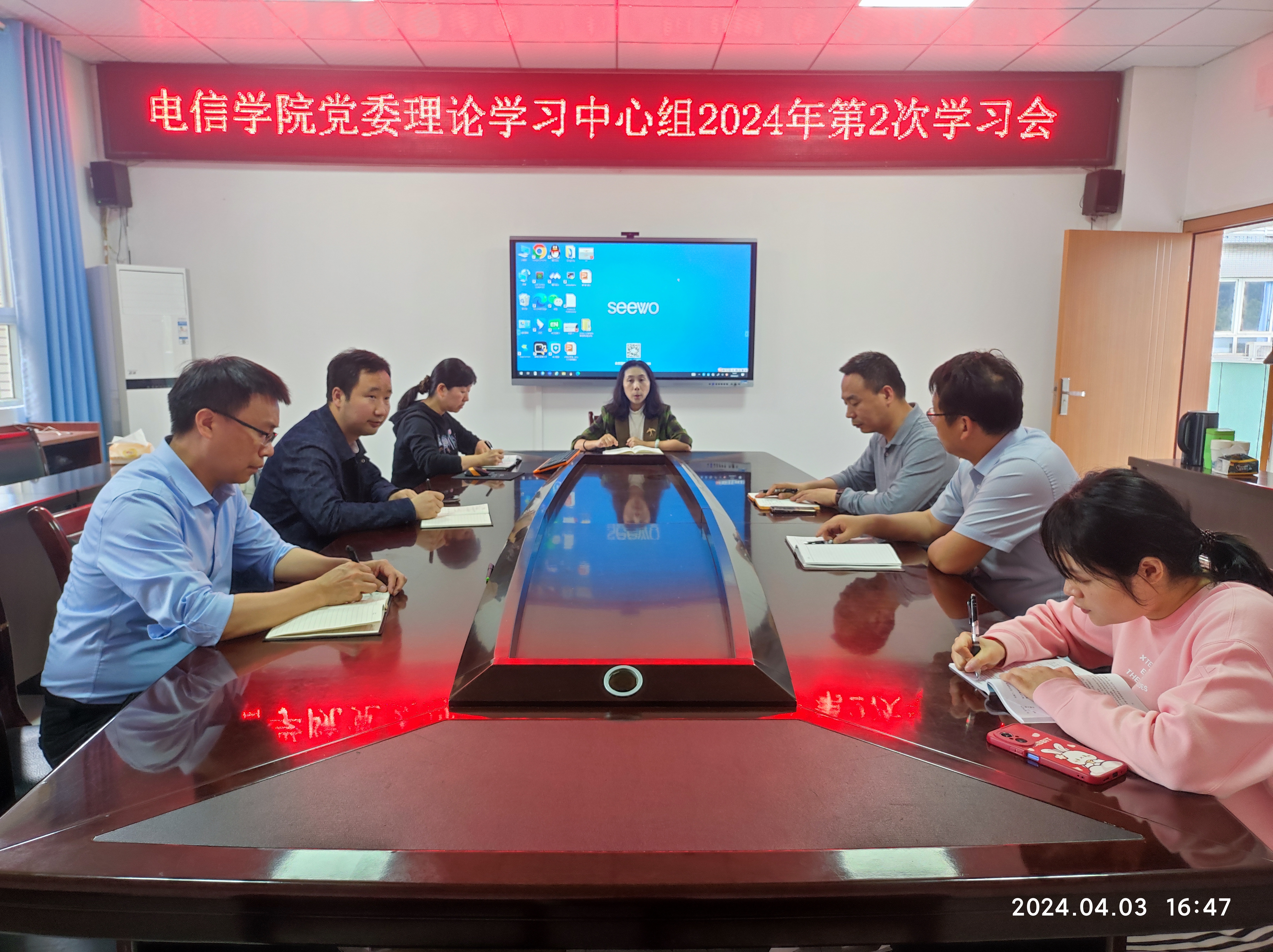 a片无码 召开2024年第2次党委理论学习中心组学习a片无码 召开2024年第2次党委理论学习中心组学习 4月3日上午,a片无码 在格物楼1417会议室召开2024年第2次党委理论学习中心组学习会。学院党委理论学习中心组全体成员参加了本次学习,会议由学院党委书记张敏主持。 会议集中学习了习近平总书记对中央党校中青年干部培训班开班之际作出的重要指示、《2024年政府工作报告》等重要内容。 在交流研讨环节,学院院长党随虎结合学院学科专业特点对新质生产力进行解读,他表示新质生产力具有高科技、高效能、高质量等突出特征。推动产业链、供应链优化升级,培育未来产业,均离不开新一代电子信息技术、信息技术产业的强有力支撑。他强调学科、科研、人才统筹推进是学科新质生产力形成的关键路径。因此在推动学院高质量发展过程中,我们要充分响应重庆33618现代化产业体系的战略部署,依据学校办学定位,做好学科体系布局,深化校地企协同融合发展,优化政产学研用贯通机制,推动“1-10”的应用研究以及“10-100”的科技创新成果转化落地,不断拓展发展学科新质生产力的着力点。依托现代产业学院探索人才培养新模式,开展本硕贯通培养,强化科教协同和产教融合育人,打造政产学研用贯通的育人高地,全面提高人才培养质量。以有组织的学科布局、科研攻关、科技成果转化和创新人才培育为高质量发展增势赋能,推动电信信息学科新质生产力加速形成。 张敏书记在总结发言中表示,要深入学习贯彻习近平总书记重要讲话精神,深刻理解新质生产力内涵,拥抱新的变化,把学院的教学科研工作与重庆地方经济建设、国家战略发展的需要结合起来,把论文写在祖国大地上;要将党建工作、理论学习与学科专业特色结合起来,紧密结合学院实际发展新质生产力,着力推动创新发展,以实干实绩开创高质量发展新局面。