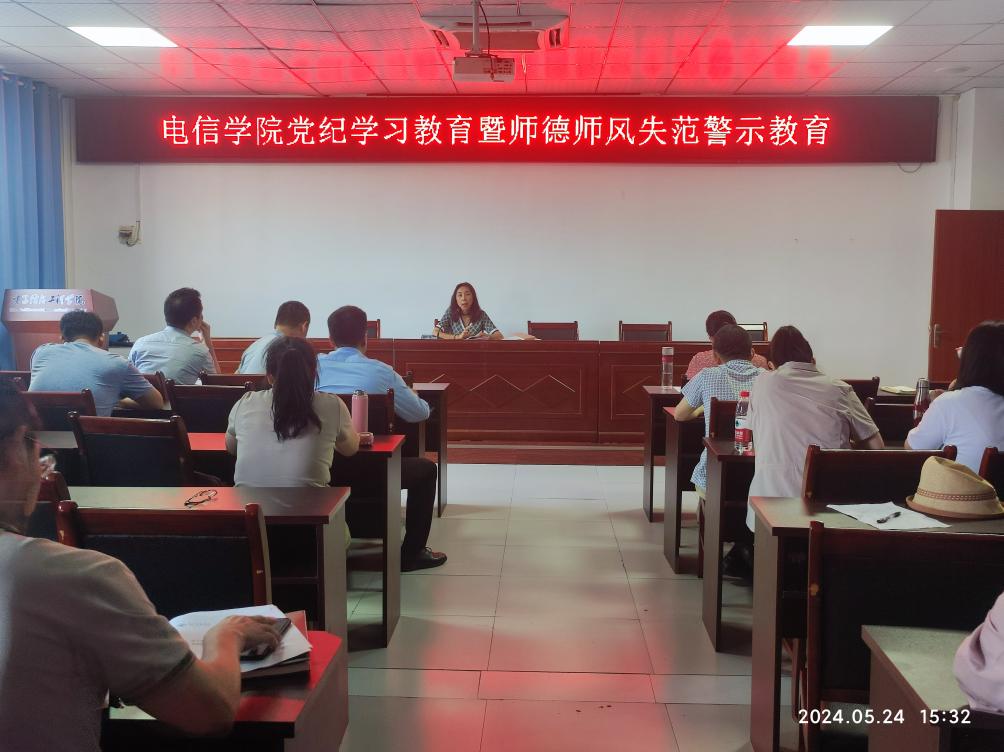 在格物楼1508会议室开展了党纪学习教育暨师德师风失范警示教育大会。会议由党委书记张敏主持,全体教职工参会。