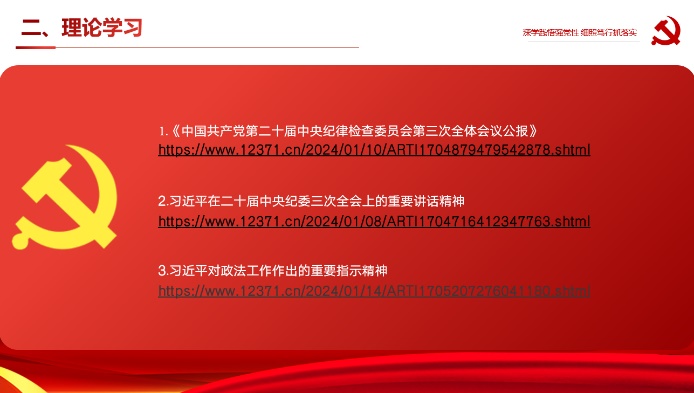 会议上,学生第三支部的同志们,对“中国共产党第二十届中央纪律检查委员会第三次全体会议公报”“习近平在二十届中央纪委三次全会上的重要讲话精神”进行了集中学习。对“‘九个以’的实践要求是指的什么”“如何做到‘笃行践悟’”进行了热烈的讨论。