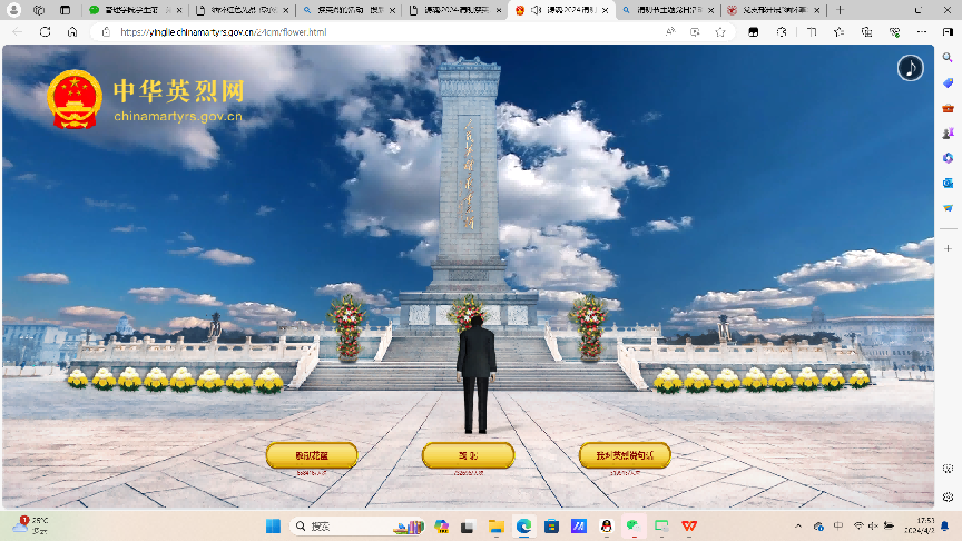学生第三党支部成员积极开展“致敬英烈,缅怀革命先烈”网上主题活动,通过“向英烈献花”“向烈士鞠躬”“感言寄语”等方式,向革命先烈表达缅怀之情,还可以通过这一平台了解烈士功勋,查询红色故事。“清明祭英烈”,通过追寻英雄足迹,继承先烈遗志,铭记党的光辉历史,增强爱党爱国情感,让党员同志永远不要忘记今天的幸福是怎么来的,要倍加珍惜,时刻不能忘记肩上的责任,像英烈那样砥砺前行。