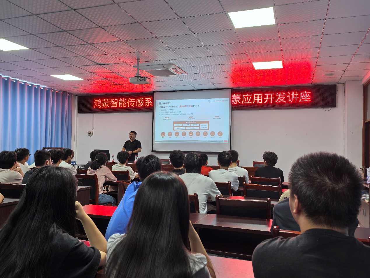 首先,党院长主持召开了微专业开班会议,对学院围绕微专业课程、平台、师资等方面所做工作做了介绍,强调了行课纪律,并鼓励同学们努力学习,锤炼技术,为鸿蒙生态建设和我国科技自主做出贡献。本次会议标志着“鸿蒙智能传感系统”微专业由申报、立项、建设与招生阶段进入到实施运行新阶段,为我校理工科专业开辟了人才培养的新通道。