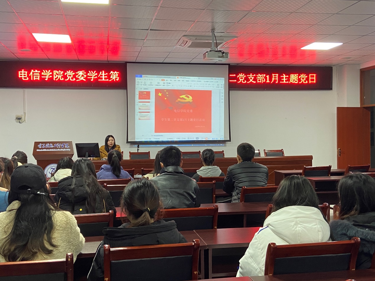 党委学生第二党支部于2022年1月13日19:00在格物楼1508开展“青春建功新征程 踔厉奋发勇担当”主题党日活动,此次活动由支部书记杨倩主持,学生第二党支部学生党员积极参与。