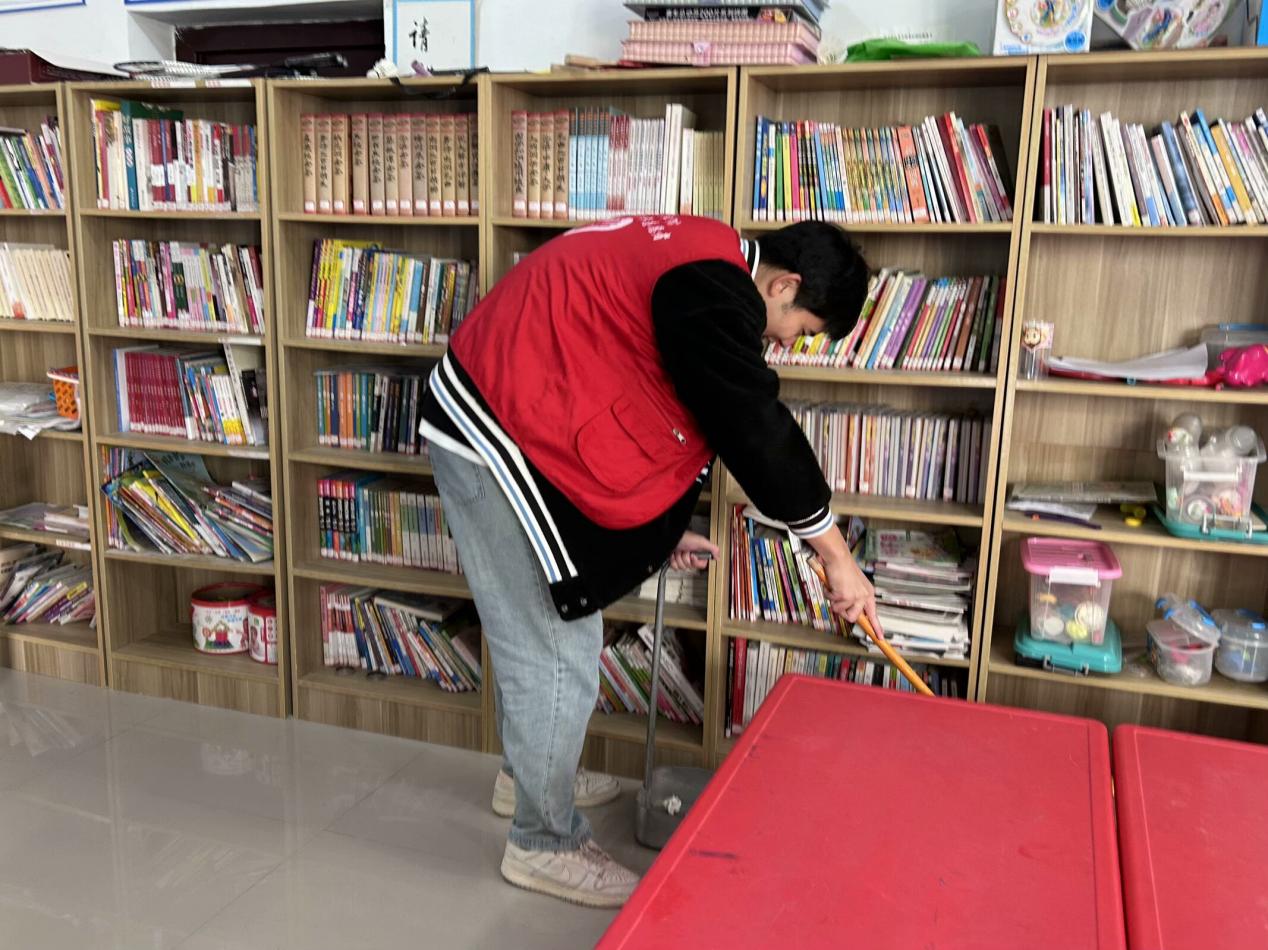 当天清晨,志愿者们身着统一的红色志愿服,8:10准时在南门集合,整队出发前往宏义社区。抵达目的地后,在社区工作人员的引导下,志愿者们迅速分配了清洁工具,明确了各自的职责,针对社区的活动室、广场、等关键区域展开了细致入微的清洁工作。活动现场,志愿者们精神抖擞,展现出极高的热情和责任感。他们有的挥舞着扫帚清扫落叶,有的用纸巾擦拭公共设施的每一个角落,有的细心整理桌面书籍,还有的志愿者手持拖把,一丝不苟地进行地面清洁。在大家的齐心协力下,社区的面貌焕然一新,环境变得更加宜居。活动中,志愿者们特别留意到社区内的卫生死角,如活动室的小楼梯、公共座椅下等平时容易被忽视的地方。他们不仅清除了积存的垃圾,还用消毒液进行了彻底清洁,确保了社区的卫生和安全。这些细致的清洁工作不仅使社区环境更加整洁、干净,也极大地提升了居民的生活质量,为社区形象加分。尽管汗水浸湿了志愿者的衣背,但他们的脸上始终洋溢着满足和快乐的笑容。此外,志愿者们还借此机会与社区居民互动,宣传环保理念,倡导减少一次性用品的使用,推广垃圾分类的重要性,鼓励居民共同参与到保护社区环境的行动中来。居民们对志愿者的倡议给予了积极响应,纷纷表示将在日常生活中积极践行环保行为。
