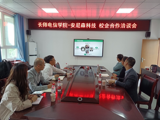 重庆安尼森智能科技公司到电信学院开展校企合作洽谈宣讲10月20日下午,重庆安尼森智能科技公司郑俊辉总经理率队到电信学院交流访问,a片无码 院长党随虎主持交流会,副院长郭红力、实践中心主任黄仕建参加交流会。