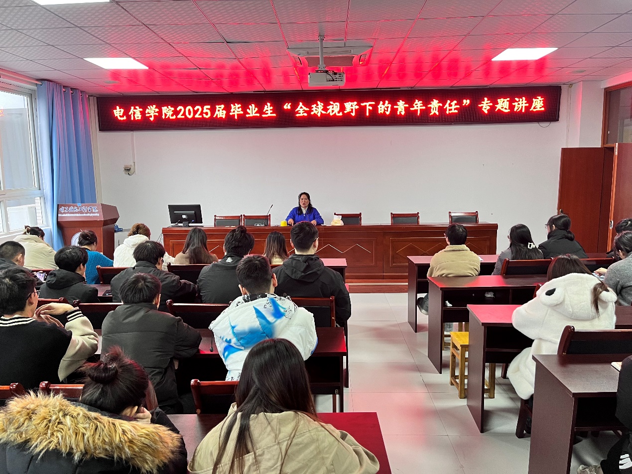 肩负责任,放眼全球——电信学院2025届毕业生“全球视野下的青年责任”专题讲座2024年12月13日16:00,电信学院在格物楼1508教室举行了“全球视野下的青年责任”专题讲座。本次讲座旨在帮助学生深入理解习近平外交思想,树立全球视野和责任意识。 活动伊始,辅导员谭洲敏老师简要介绍了讲座的背景和目的,强调在全球化日益加深的今天,青年作为国家的未来,肩负着推动人类命运共同体和促进世界和平与发展的重要责任。接着,谭老师详细解读了习近平外交思想的核心内容,介绍了其形成背景及在新时代中国特色大国外交中的指导意义,强调和平发展、互利共赢的重要理念。