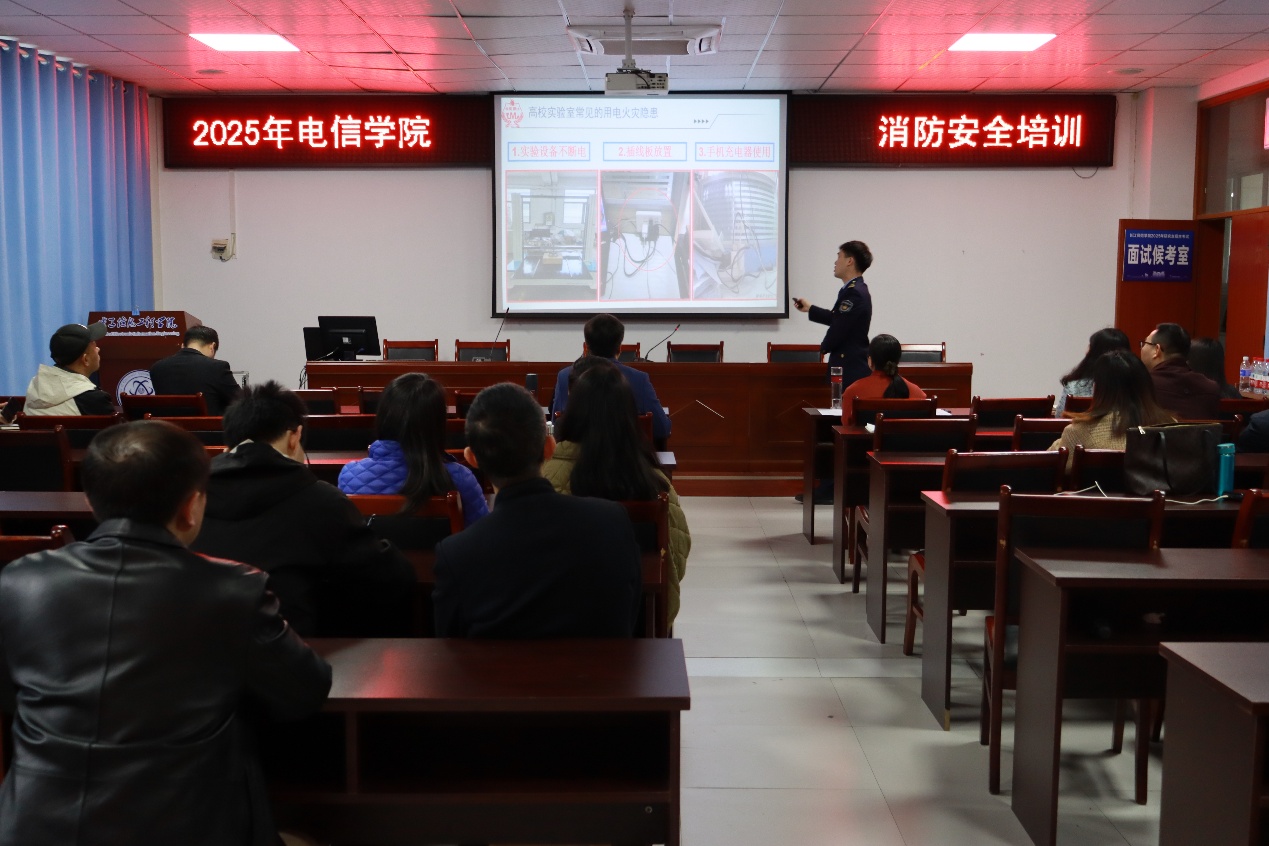 为进一步提升教职工的安全意识和应急处置能力,电信学院于3月28日下午在格物楼1508开展了2025年实验室安全专题培训。会议邀请到重庆市利民防火中心冯广庆教官到场培训,电信学院全体教职工出席。