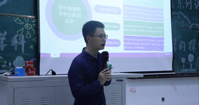 首先,刘老师为同学们解答了以下一系列的问题:跨学科的由来、为什么要跨学科学习、什么是跨学科实践主题学习、跨学科实施实践的定位、跨学科实施途径和如何将跨学科实践主题项目式教学化等。然后,他以基于项目式学习的《微型密度计制作》举例讲解具体教学流程。最后,老师嘱咐同学们:教学能力的提升只是育人的一种方式,但最重要的是学习育人的能力。