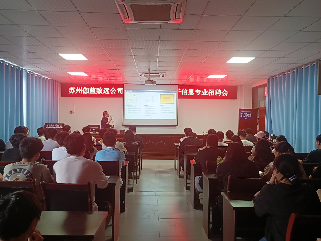 为拓宽毕业生就业渠道,助力毕业生高质量就业,2025年5月24日,学院举办电子信息类专场招聘会,伽蓝致远公司资深总监李冰晶、人事经理陈苗与100余名应届毕业生展开深度互动,现场气氛热烈,为校企人才对接注入新活力。