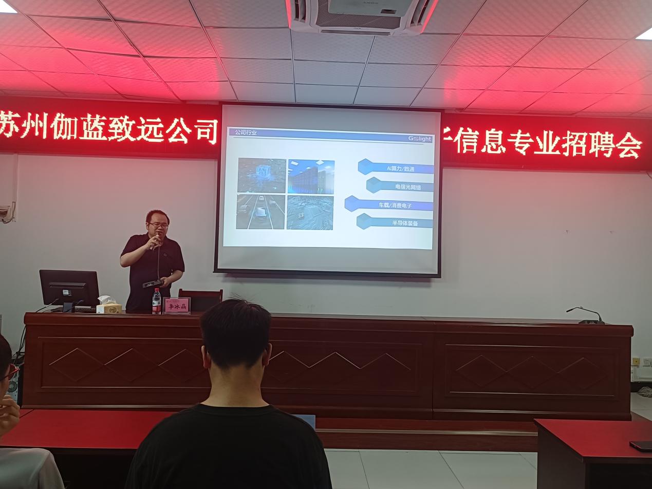 招聘会上,李冰晶总监发表主题演讲。他指出,随着5G、数据中心、人工智能等技术的爆发式增长,光通信行业正迎来黄金发展期,伽蓝致远通过持续技术创新与国际化战略抢占市场先机。针对学生关切的职业发展问题,李总监详细阐释了公司“开放、坚韧、协作、进化”的文化内核,并强调“以奋斗者为本”的理念。他透露,公司为应届生提供“专业-技术-管理-销售”四维职业发展通道,辅以定制化培养方案,助力新人快速成长为行业骨干。