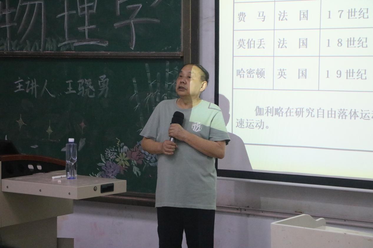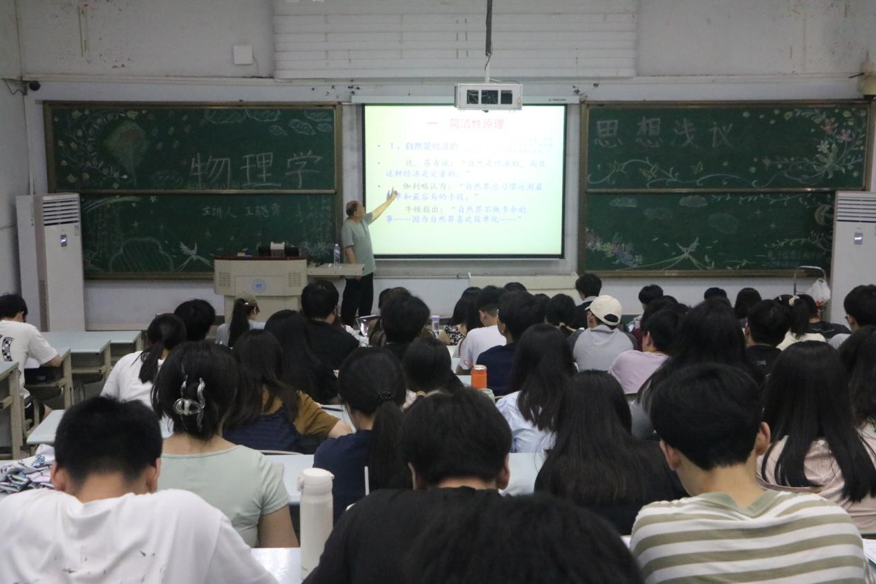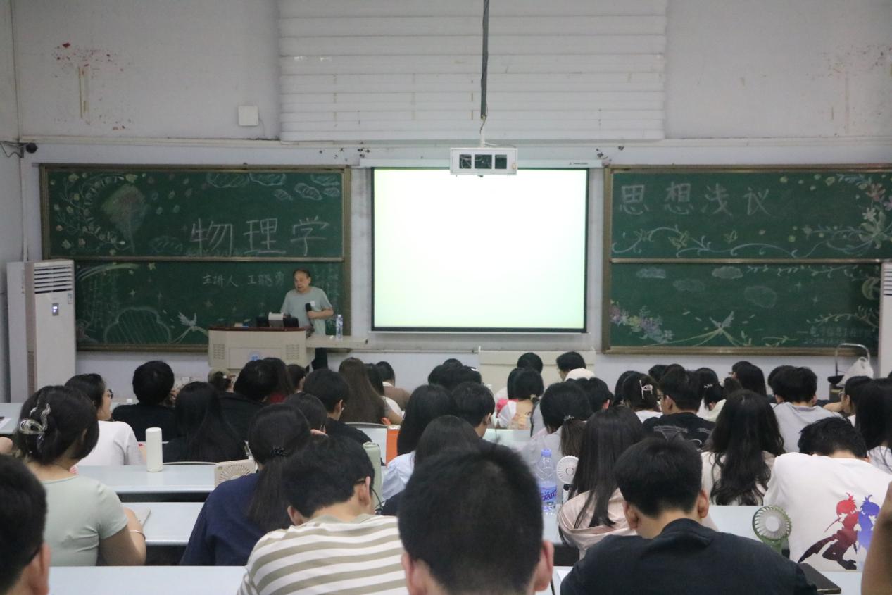 于6月13日14:20在正心楼02阶梯教室开展22级物理学系列讲座之三--“物理学思想浅议”主题讲座。此次讲座由物理系主任葛泽玲主持,物理教师王骁勇主讲,全体2022级物理师范生参与。