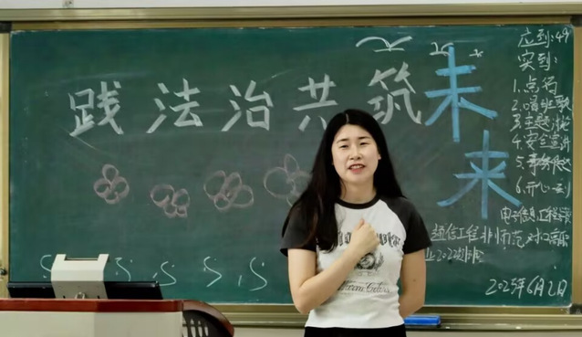 班会以齐唱班歌开场,激昂旋律振奋人心。理论学习环节,主持人为同学们讲解宪法相关知识,表明宪法是国家发展历程的伟大成就之一,同时结合教育法阐释国家对教育的保障,引导同学们珍惜受教育权利、履行义务。同时主持人紧密关联日常法律知识,呼吁同学们做到思想认同与行动践行相统一。