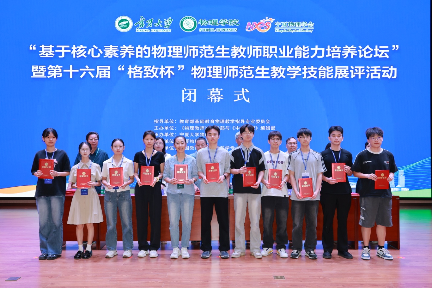电信学院物理学专业在第十六届“格致杯”展评活动中斩获佳绩2025年7月28日,“基于核心素养的物理师范生教师职业能力培养论坛”暨第十六届“格致杯”物理师范生教学技能展评活动在宁夏大学圆满落幕。电信学院物理学专业学子在此次赛事中表现亮眼,凭借扎实的专业功底和出色的教学能力,斩获多项荣誉,充分展现了学校在物理师范生培养方面的丰硕成果。