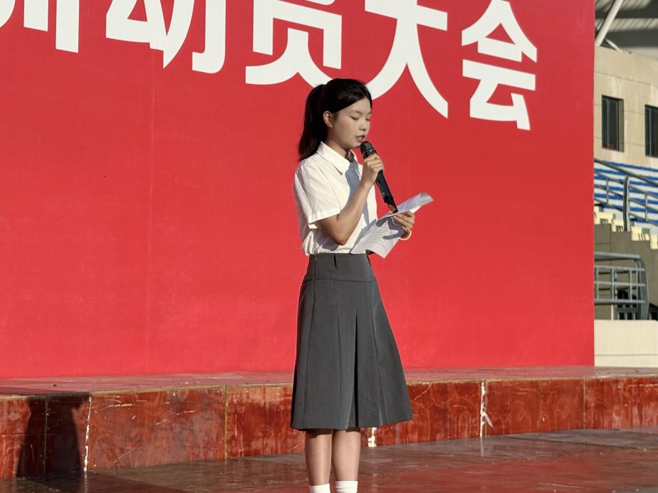 23级物理四班毛丹林同学在国旗下发言。她结合自身经历,讲述了从竞选班委失利的低谷,到加入学生会服务同学的成长;从学业排名逐步提升的喜悦,到积极参与竞赛屡获佳绩的荣耀。她鼓励大家不要畏惧一时的挫折,要始终保持热情与坚持,在实干中锻炼自我、贡献集体,让青春在奋斗中绽放出最耀眼的光彩。