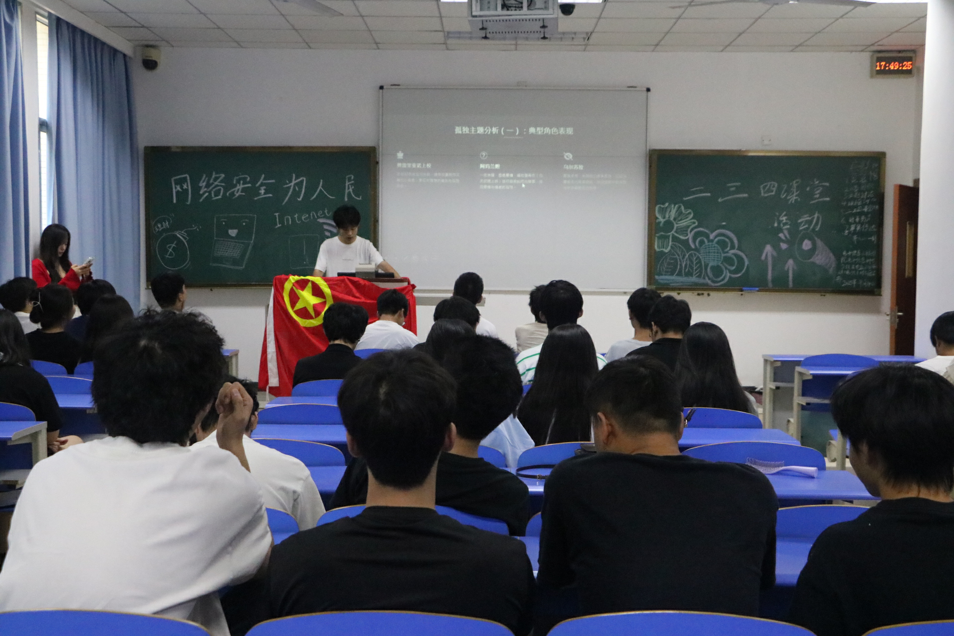 团会以全体同学齐唱激昂奋进的团歌拉开序幕,在随后的主题讨论环节,同学们围绕“网络安全的重要性”展开深入交流,纷纷结合自身认知与生活案例,就“网络安全如何护佑国家”“怎样筑牢社会与个人的网络安全防线”等话题积极分享见解。