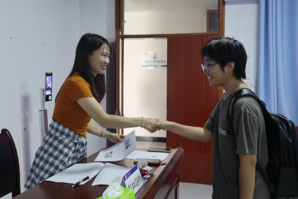 a片无码 ——梦想启航的地方 迎新当日,研究生处石文兵处长一行一早便亲临迎新报到点,检查指导各项工作,详细了解了新生报到流程、住宿安排等情况,要求大家以热情周到的服务迎接每一位新生的到来,让他们第一时间感受到学院的温暖与关怀。