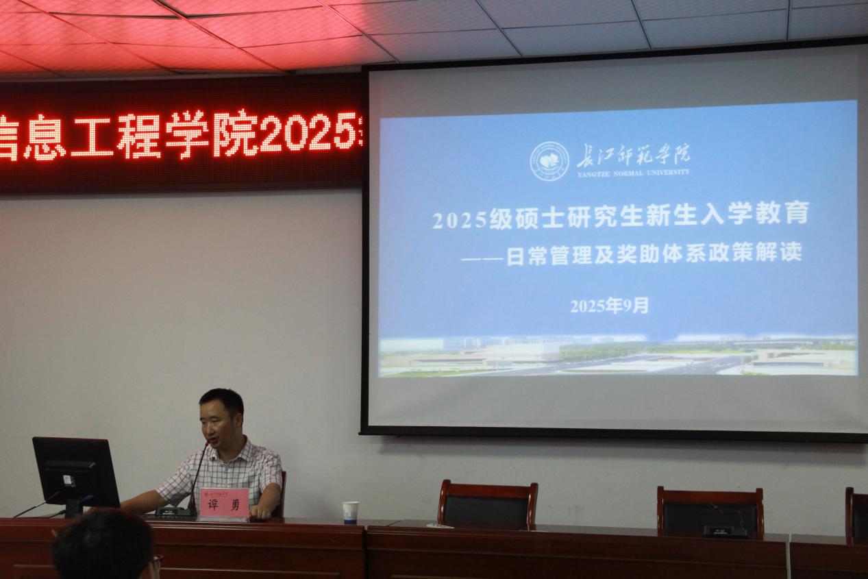 谭勇副院长为新生详细解读日常管理及奖助体系政策 会上,谭勇副院长围绕研究生培养的各个环节进行了系统性的讲解。他首先详细介绍了学校与学院在日常管理及奖助体系方面的政策,包括学籍管理、行为规范、奖学金评定、助学金申请、助学贷款、“三助一辅”岗位等具体内容,为同学们的学习与生活提供了清晰的指引和有力的保障。 随后,谭院长进行了人才培养方案的要点解析,并就课程选择、上课时间与地点、教材购买等同学们迫切关心的问题进行了逐一说明和提醒。