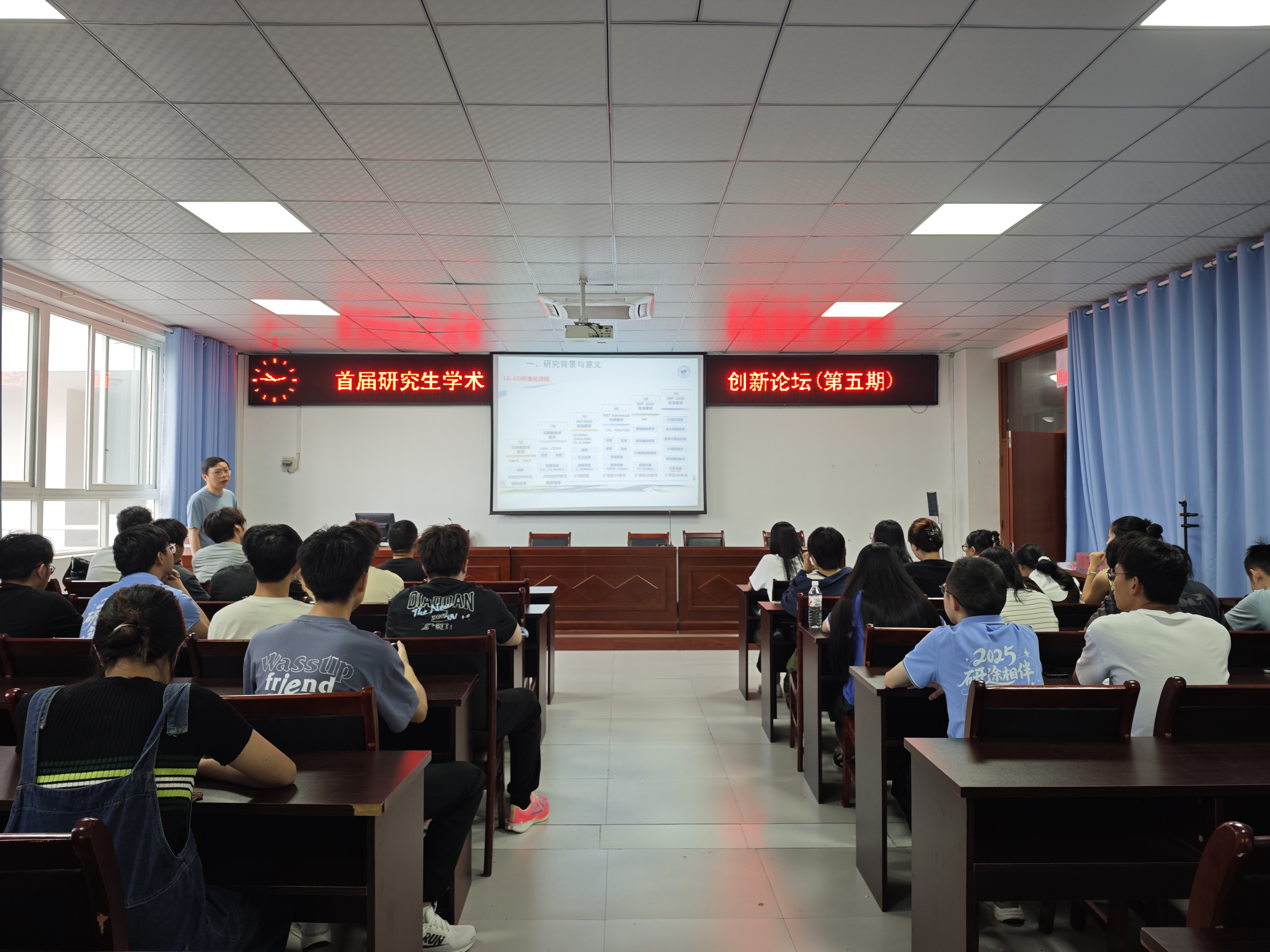 首届研究生学术创新论坛(第五期)于9月29日上午在格物楼1508举行。杜得荣副教授作题为“低轨星地融合通信智能化信道建模理论与方法”的学术报告。报告由学院副院长谭勇主持,电信学院2025级全体研究生新生参会。