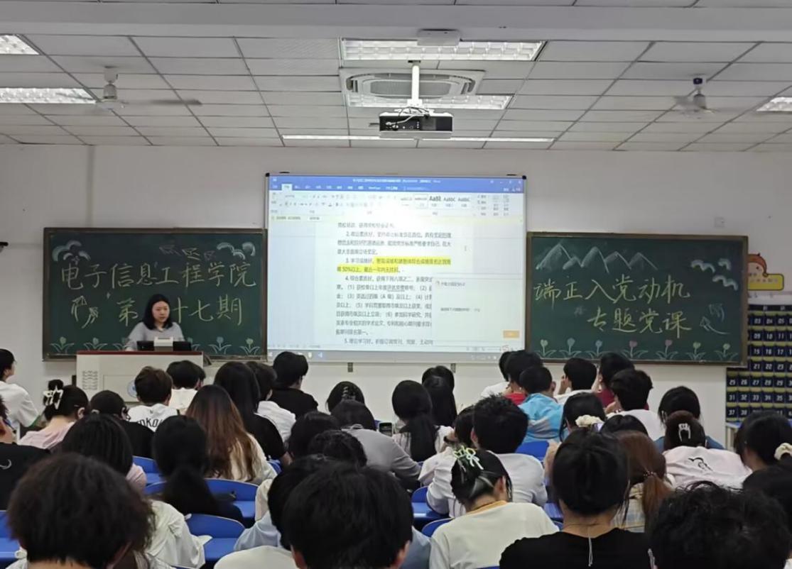 端正入党动机专题党课2025年5月16日17:00,学生第二党支部于崇礼楼102教室举办“端正入党动机”专题党课。本次活动由党支部书记杨倩主持,党支部全体入党积极分子及发展对象参与学习。