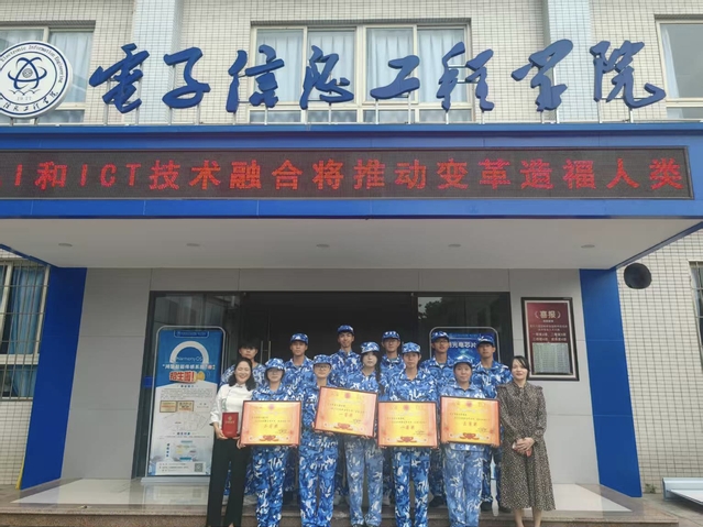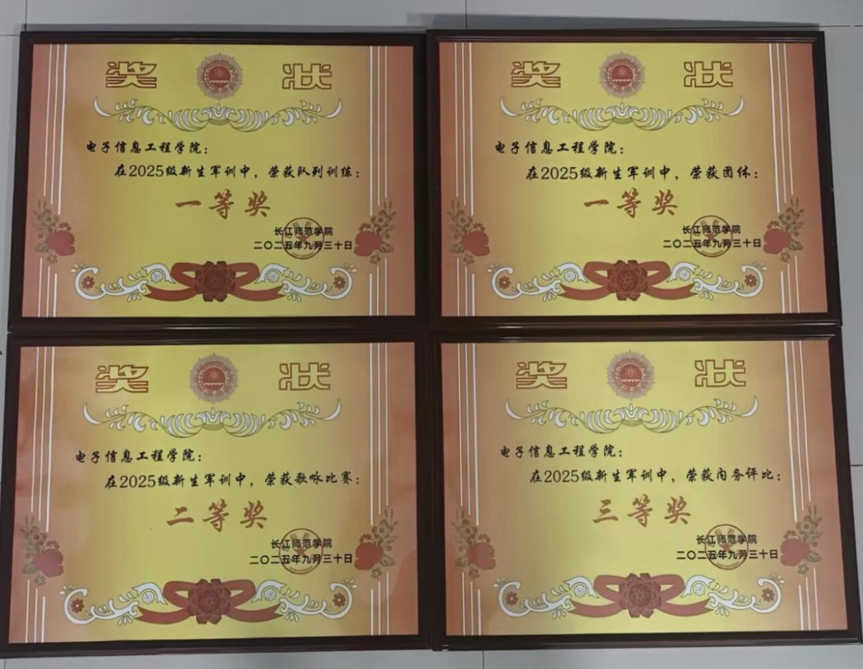 在本次军训中,电信学院不仅高度重视学生的军事技能训练,学院领导多次深入军训现场,亲切慰问正在训练的新生,鼓励大家克服困难,坚持完成军训任务。学院全体新生在军训中表现极为出色,凭借坚韧不拔的毅力、高度的纪律性和出色的团队协作能力,在各项评比中斩获多项荣誉。队列展示环节,同学们步伐整齐划一,动作规范标准,口号响亮有力,充分展现出良好的军事素养和昂扬的精神风貌,一举夺得队列一等奖。宿舍内务评比中,同学们严格遵守内务标准,将宿舍整理得干净整洁、井井有条,荣获内务三等奖。歌咏比赛里,电信学院代表队歌声嘹亮、情感真挚,用歌声传递出青春的活力与激情,斩获歌咏二等奖。综合各项表现,电信学院凭借卓越的整体实力和出色的组织协调能力,荣获团体一等奖。