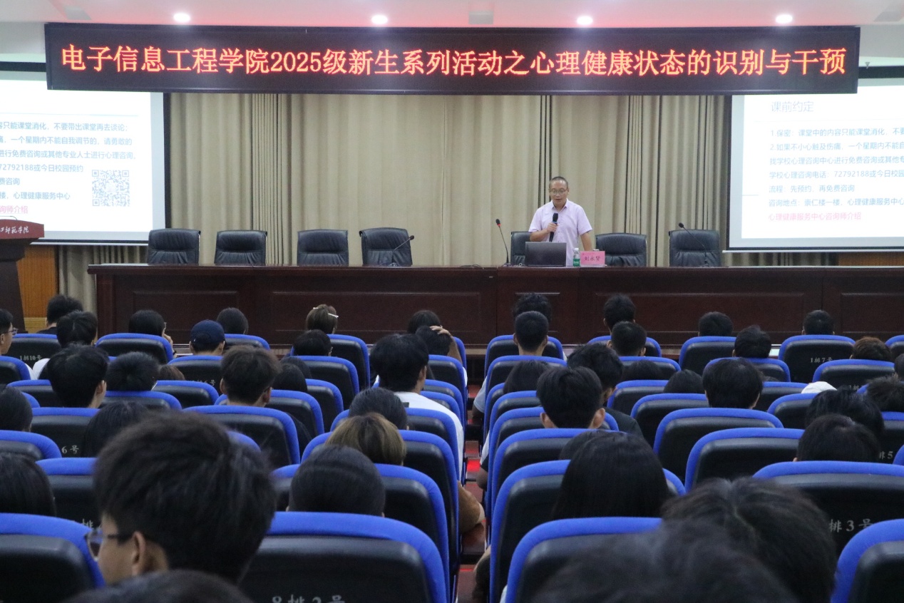 a片无码 举办25级新生心理健康专题讲座,助力学子筑牢心理“防护盾”为引导大一新生认识心理健康重要性、掌握调适技巧,a片无码 于10月12日在鉴湖报告厅举办心理健康专题讲座,由刘永贤老师主讲,25级全体新生参与。