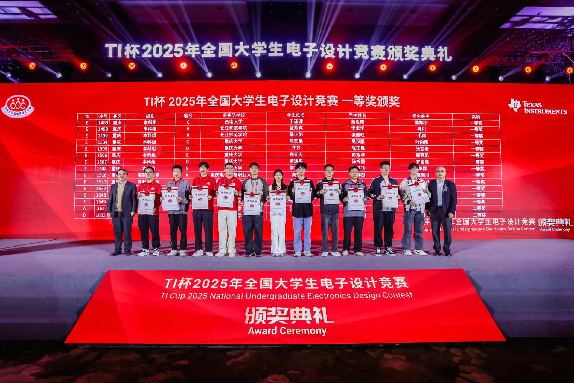全国大学生电子设计竞赛作为教育部和工信部共同发起的A类赛事,2025年吸引了1161所高校的22586支队伍、67758名学生参赛。在重庆赛区,我校参赛团队展现出压倒性优势,包揽数字电源类方向重庆市总分前三名,并在综合测评中占据16个全国总测评名额中的两席——这也是该方向重庆赛区仅有的两支晋级队伍。