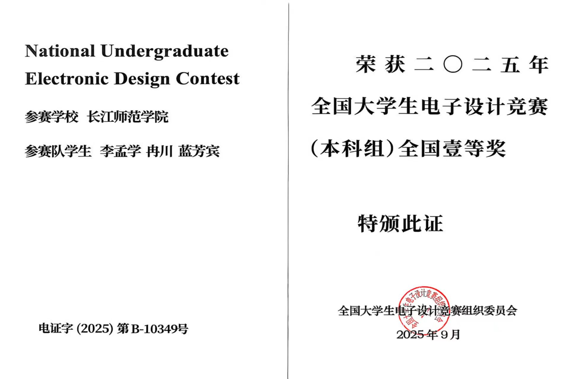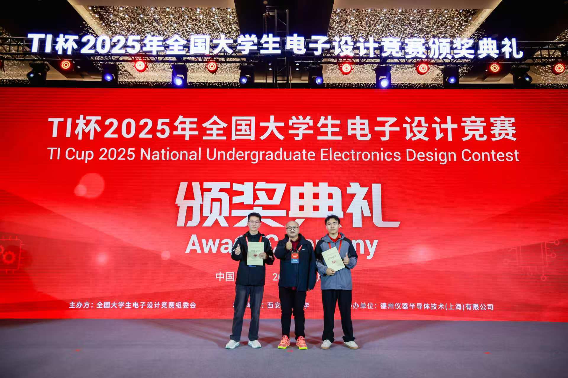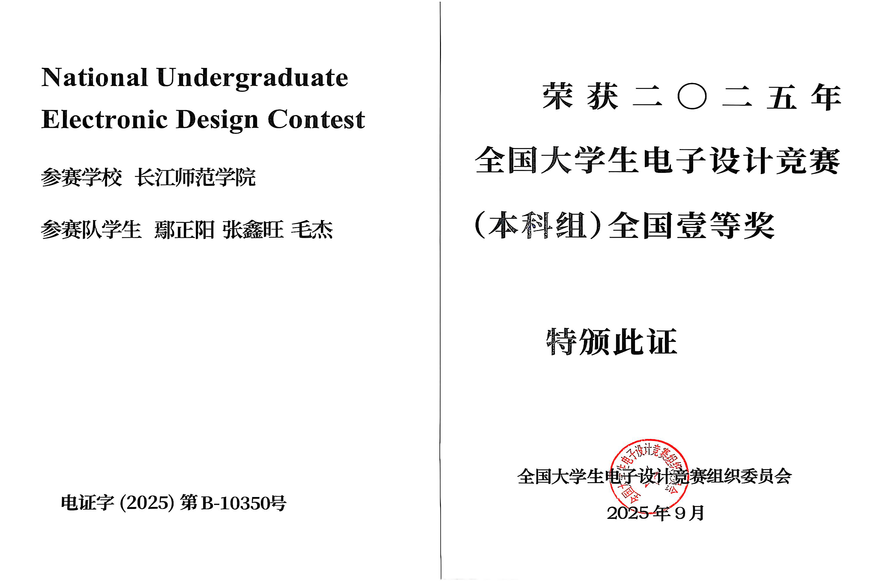 两支参赛队伍,同时在这项电子专业顶级赛事中登上领奖台,获得国家一等奖。