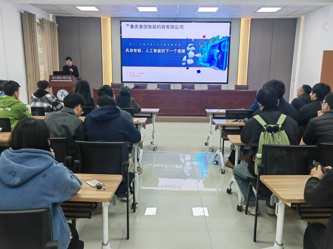 第二届研究生学术创新论坛(第二期)于3月31日上午在格物楼1101报告厅举行。学院邀请重庆善信智能科技有限公司技术总监周诗宇高级工程师作题为“具身智能:人工智能的下一个浪潮”的学术报告。报告由实验室主任黄仕建老师主持,2025级全体研究生参会。